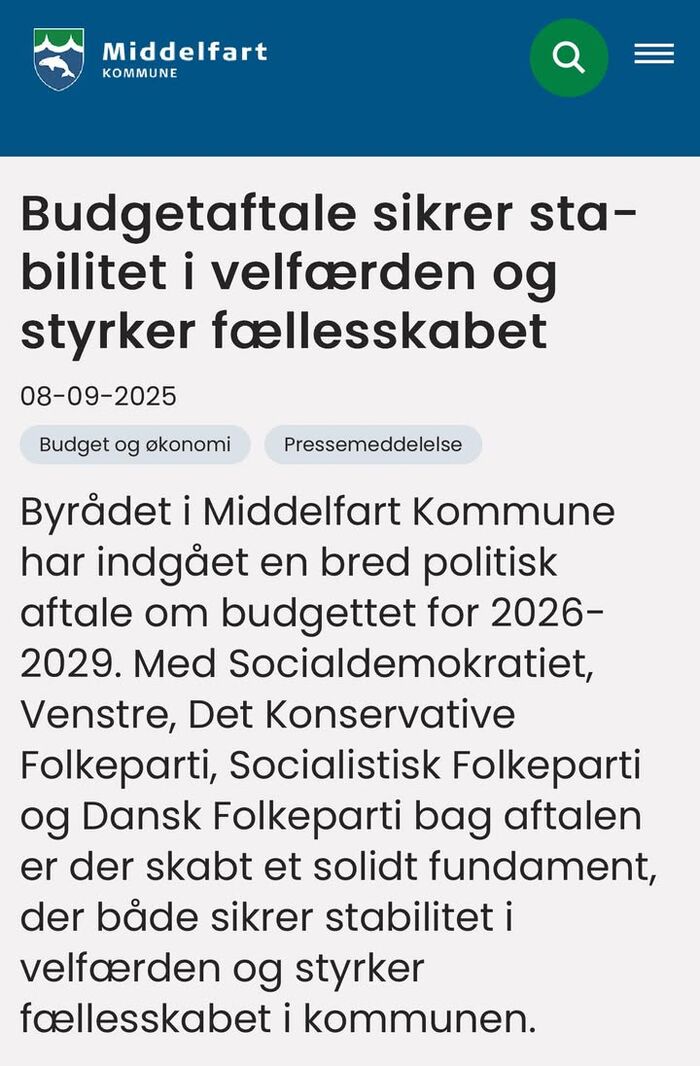 "Jeg er glad for, at det er lykkedes at samle de liberale kræfter i Middelfart og ser frem til at samarbejde med Anders og hans gruppe. Det er vigtigt for mig og Liberal Alliance, at Middelfart prioriterer de nære og nødvendige opgaver – med fokus på den enkelte – frem for prestigeprojekter eller erhvervsaktiviteter, der burde være private. Der er opbrud blandt partierne, og det giver grund til optimisme."