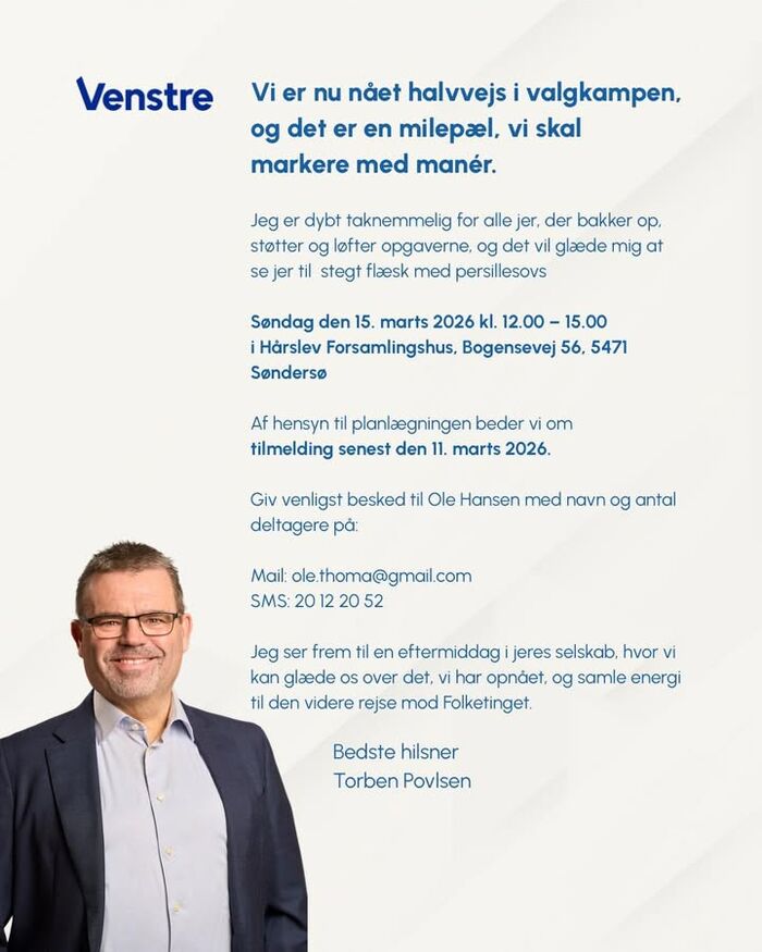 Kom til generalforsamling i Venstre Middelfart tirsdag den 24. februar 2026 kl. 19.00